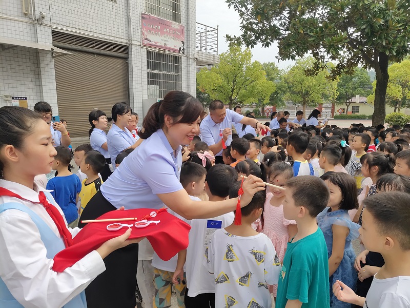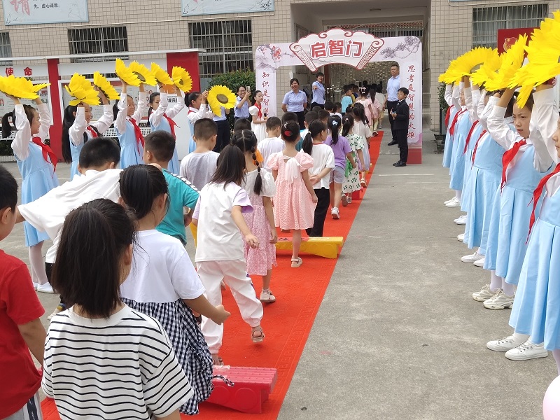 本网讯 9月8日,梅城镇完小为一年级新生举行朱砂启智仪式,给“新学生”满满的仪式感。该校校长夏国荣、副校长龚吉清、副校长刘晓霞、党支部副书记王喜安等领导手持蘸着朱砂的笔,在学生眉心处点处庄严神圣地为萌娃们一一点上朱砂痣。“痣”与 “智”谐音,意为开启智慧,目明心亮,希望同学们日后在学习上能一点就通。一年级班主任带领该班新生过红毯,跨过“进取向善、身体强健”等门槛进入启智门,礼仪队队员手持向日葵花迎接,以此鼓励同学们在今后人生之路上开启智慧,堂堂正正为人,认认真真学习,为复兴中华而努力读书。 夏国荣表示:一颗颗“红痣”点在孩子们的眉心,愿同学们一颗红心心向党,呵护童心永不忘。希望这一仪式感能增强孩子们成为新时代小学生的光荣与自豪,让他们感受中华传统文化的洗礼。(通讯员:高永健 姚钢台)