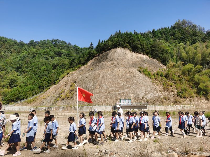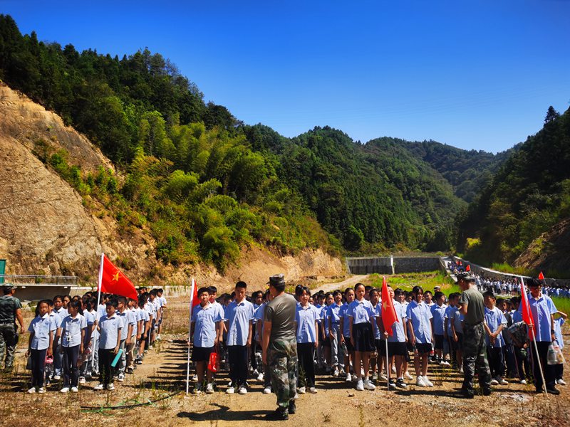 在烈阳下,一支稚嫩的行军队伍浩浩荡荡,向着队旗飘洋的方向出发。在良好秩序的保证下,全校师生不到一小时就来到岩溪村。稍作休整后,以年级为单位进行野外队列练习及拉歌比赛,口号声此起彼伏,威武雄壮,凸现着中华少年之神气。