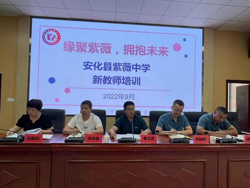本网讯 9月4日,安化县紫薇中学组织全体新进教师进行岗前培训,旨在让新教师更快适应新环境,融入新集体。 培训伊始,该校校长曹文武对新教师的到来表示最诚挚的欢迎,向新教师介绍了学校的办学过程和办学特色,并对新教师提了几点要求:一是要了解学校,进入角色;二是服从学校,抓好本职;三是空杯心态,取长补短;四是真情关爱,用心服务。希望全体新教师用心用情对待教育,培养学生、爱护学生、教育学生,用实际行动诠释教书育人之责,争做新时代“四有好老师”。接着,该校德育副校长李华集向大家介绍了紫薇中学整体概况和学校文化。紫薇中学围绕紫薇文化确定学校的核心思想。以“紫薇花开,自由自在”为办学愿景,秉持“立德启智,适性扬长”的办学理念和“立心立命,惟德惟勤”的校训。不忘初心,踔厉奋发,践行“向善向真,向上向学”的校风;“善思善研,博学笃行”的教风;“自信自主,自立自强”的学风。 道虽迩,不行不至;事虽小,不为不成。相信通过这一次培训,该校新入职教师能够尽快熟悉和适应教学活动,积极融入紫薇中学的大家庭!(通讯员 肖静和 李晴)