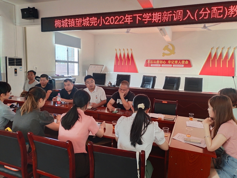 本网讯 新学期开学在即,梅城镇望城完小迎来了一批教育新鲜血液,为了帮助新教师全面了解学校,尽快适应新角色,融入望城完小大家庭,新入职教师见面会于8月26日下午在会议室召开,全体领导班子成员及十名新入职教师参加会议。会议由办公室主任李咏如主持。 李咏如代表学校欢迎这些蓬勃力量的加入,并向新教师介绍了该校行政人员。同时他向新教师们提出三点期望:一是调整心态,转换角色,尽快适应新的工作岗位。二是勤于实践,发挥才干,迈好坚实的第一步。作为新教师,一迈上工作岗位,就要以一种认真的态度对待自己所做的每一件工作,苦练基本功,特别是教育教学基本功,充分发挥自己聪明才干,勇于实践,做到四勤:勤学习、勤思考、勤探索、勤总结。三是加强师德修养,塑造自己的人格魅力。新教师们畅所欲言,依次介绍了自己的基本情况,畅谈了对未来职业生涯的憧憬和规划。新调入教师纷纷表示,会尽快适应新的工作环境,做好本职工作,认真学习,虚心请教,珍惜机会,积极工作。 该校校长李兴家说道,新进教师是学校的新血液、新力量、新希望,是学校未来发展的中坚力量,希望新进教师能尽快适应新环境、新生活、新工作,坚定教书育人的职业信念和职业操守,提升立德树人的责任感和使命感。努力使自己磨炼成为“有理想信念、有道德情操、有扎实学识、有仁爱之心”的“四有”好老师,共创最美望城。(通讯员 李咏如)
