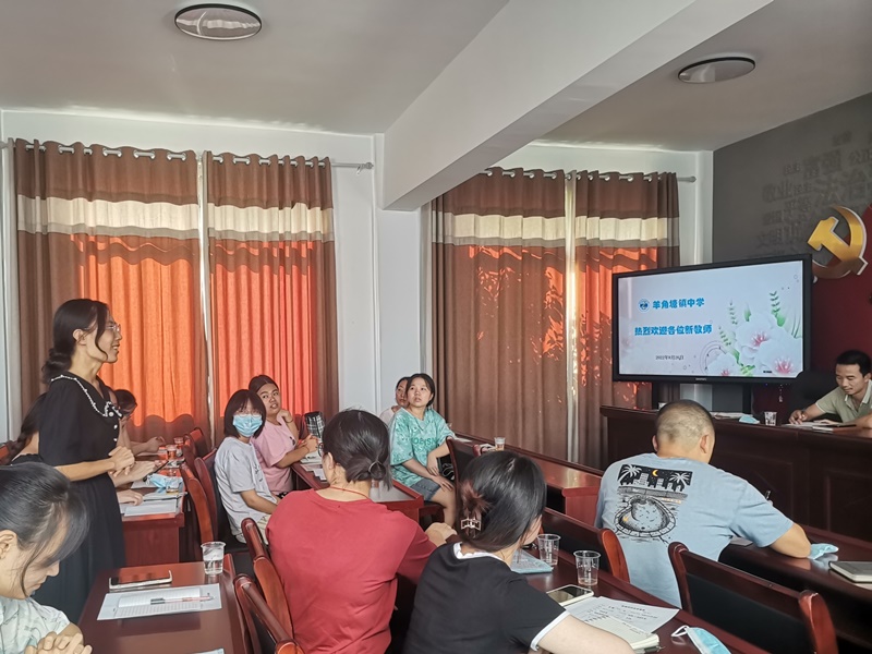 本网讯 8月26日16:00,羊角塘镇中学组织全体行政人员和18位新教师在学校会议室进行了2022年新进教师见面会。 会上,该校办公室主任黎娟热情洋溢地向各位新老师介绍了学校行政人员的基本情况,加强了新老师对学校管理团队的了解。每位新入职教师分别作了自我介绍,真诚地分享了他们的教育背景,愉快地畅谈了他们的教育经历,由衷地讲述了他们对教育工作的热爱,坚定地表达了他们为学生、学校发展贡献力量的决心。 最后,该校校长方立安对18位新老师的到来表示热烈欢迎,并希望他们能够以新身份、新姿态在羊中大家庭快乐工作,快乐生活,凝“新”聚力,携手共进。(通讯员:黎娟)