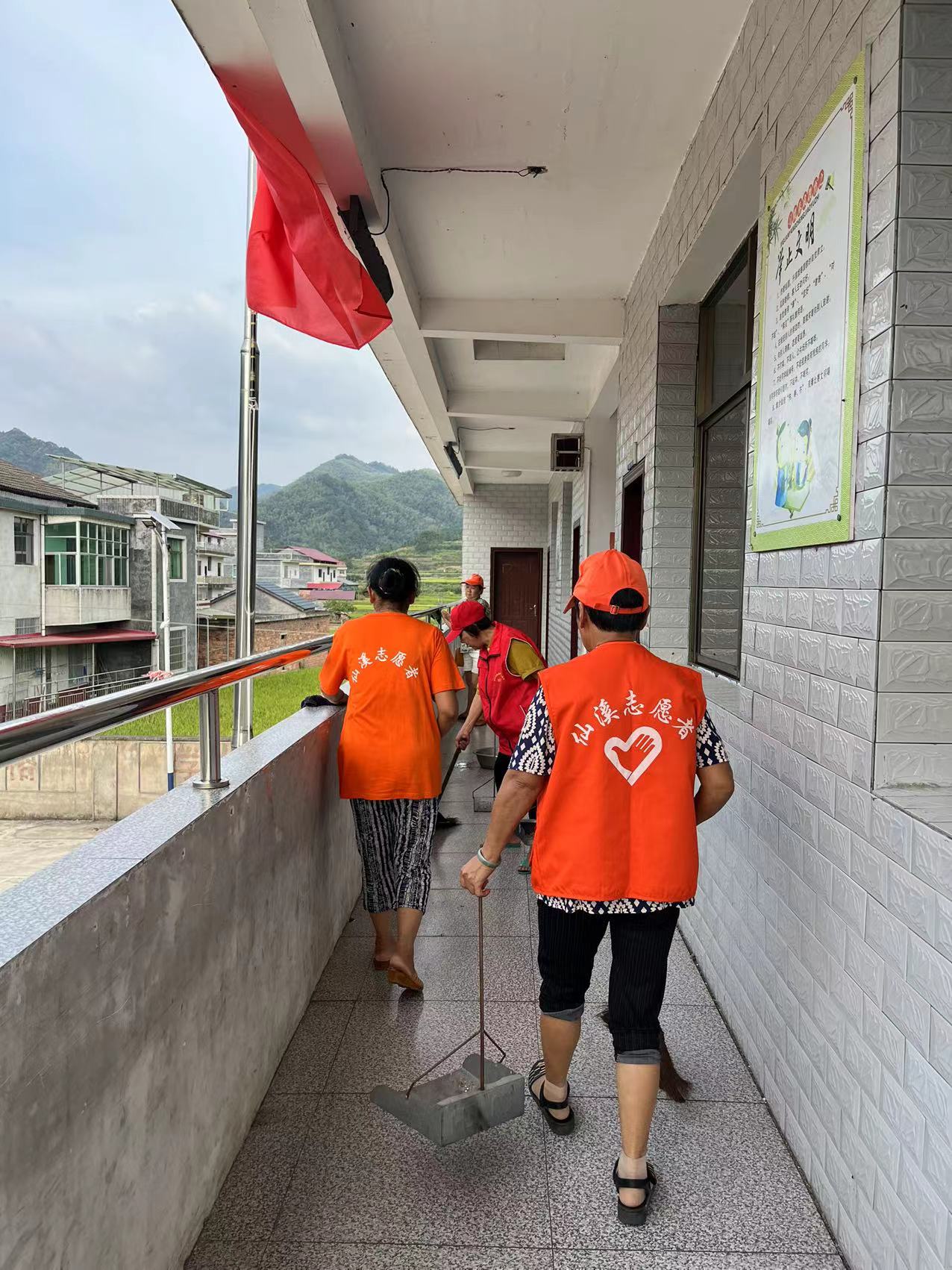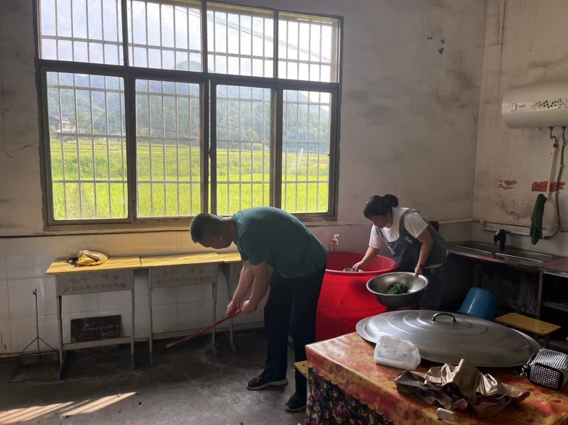 本网讯 8月25日下午,在九龙学校校长杨跃飞的带领下,总务主任刘望军,办公室主任方学文,幼儿园教师李样明联合仙溪镇九渡水村的志愿者们对九渡水学校的校园卫生进行了彻底的打扫。