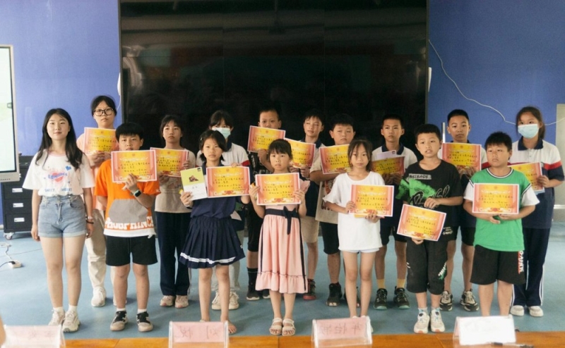 本网讯 7月22日上午,湖南师大赴渠江学校支教队举办了以“书香润童心,阅读促成长”为主题的图书分享会。支教队成员席毅东、李子颖担任主持人,六位支教队其他队员担任评委,渠江学校小学部全体学生参与此次活动。 活动伊始,李子颖作为老师代表给同学们讲解了阅读的重要性并以书籍《巴黎圣母院》为例分享了自己的阅读感悟。活动中期,“阅读之星”图书分享展示大赛正式开始,同学们依次上台分享自己推荐书本的内容和心得体会。比赛结束后,评委现场进行打分,评选出优秀分享者后进行了颁奖仪式,并进行合影留念。 此次图书分享会旨在激发同学们的学习热情,引导同学们养成爱读书、读好书、会思考的阅读习惯,为营造翰墨飘香、文明向上的校园文化氛围打下了良好基础。 |