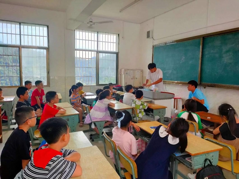 本网讯 7月9日上午,湖南师范大学物理与电子科学学院“问渠源江”社会实践团携手湖南工商大学学子在渠江学校小学部开展趣味实验教学。本次教学活动由“问渠源江”社会实践团协助,湖南工商大学学子主讲,渠江学校低年级学生参与。 湖南工商大学学子为帮助学生们了解到生活中的科学现象,为他们带来了一系列物理实验与化学实验,具体实验活动有大象牙膏实验、人造雪实验、魔棒点灯实验、葱汁写密信实验、虹吸实验、看见声音实验。这些有趣的实验活动,激发了学生们极大的热情与兴趣,大家踊跃参与,课堂氛围十分活跃,取得了强烈的反响,得到了学生们的一致好评。 自然科学教育是乡村义务教育小学阶段的薄弱环节,本次教学活动的目的就在于让自然科学教育真正走进乡村课堂。通过带领学生们进行实验活动,学生们走进自然科学、了解自然科学,将科学的种子栽种在了孩子们的心田。(通讯员 陈娇 余远红) |