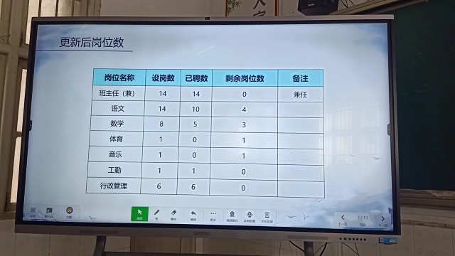 本网讯 7月8日,乐安镇完小召开“2022年县管校聘”工作会议,县教育局党组副书记、副局长邹友良、纪工委副书记卢接辉、教育团工委书记李锦辉、人事股副股长曾艳、中心学校全体班子成员参加会议。 上午8点,县管校聘工作会议正式开始,李锦辉主持会议,首先,中心学校副校长金竟成组织学习《乐安镇中心学校关于在乐安镇完小开展“县管校聘”试点工作的实施方案》;卢接辉在三个方面做了重点强调“切实提高思想认识,严格规范程序,严肃纪律要求”。邹友良要求所有教师“提高政治站位,明确相关的政策,积极参与,遵守规矩、服从安排”。 中心学校校长蒋吉贵宣读《乐安镇中心学校关于聘任胡斐同志担任乐安镇完小校长职务的通知》,接下来的每一个程序严格按照方案要求进行,主持人宣布竞聘职位、名额,然后由教师个人填写申报表,全体教师投票,唱票、检票,公布当选结果,逐一产生了新一届学校班子成员和班主任、语文教师、数学教师、体育教师、音乐教师,最终,31名教师竞聘成功,2名教师落选。 县教育纪工委全程参与投票过程,并进行全程监督,所有投票公平、公开、公正。
