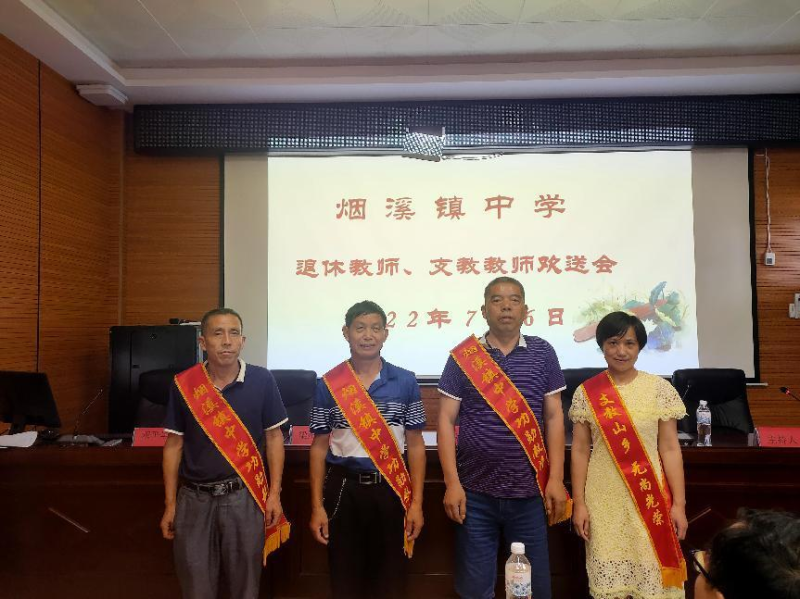 本网讯 7月6日,烟溪镇中学会议室内掌声热烈,情意浓浓,是学校正在为退休教师、支教教师举行欢送会。中心学校校长胡毅、副校长刘娟以及中学全体教师欢聚一堂,为五位老师献上祝福,活动由中学副校长刘开颜主持。 “老师您辛苦了,退休快乐。”活动由一段记载老师们教学生涯与学生祝福的视频拉开帷幕,五位老师看完视频感慨万千,眼角含着泪水,充满不舍。青年教师在发言中回忆起与五位教师一起努力奋斗时的场景,表达了对他们辛勤工作的敬佩与离别的不舍。退休教师、支教教师分别作了发言,他们回忆起在学校工作以来的点点滴滴,言谈中都饱含着对教育事业的热爱,字字句句都流露着真诚与感动。中学校长杨洋在致辞中感谢五位老师为学校教育事业做出的贡献,他还回忆起了与五位老师相处的温暖、快乐的时光,也希望老师们退休或回到原单位后继续关心和支持学校发展。最后,胡毅与刘娟为老师们颁发纪念品并合影留念。 岁月如歌青春在,教育情怀代代传。欢送会简短隆重而又温馨和谐,退休教师和支教教师虽即将离开校园,但他们身上的精神会鼓舞着所有烟中教师继续努力前行。 |