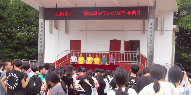 本网讯 又是一年毕业季,六月激情逐战场,美丽青春展风采,人生梦想新起航。6月20日上午,梅城镇中学在运动场举行了“一起向未来” 2022届初中毕业典礼。 青春由磨砺出精彩,人生因奋斗而升华!毕业生代表张晨曦分享了自己的毕业感言。她回忆了与同学们在校园里的幸福成长,感恩师长教诲,感恩母校培养,勉励全体毕业生以梦为马、以汗为泉,不忘初心、不负韶华 ! 校长喻选民怀揣祝福,如父亲般细细叮咛即将离开学校的九年级毕业生,要牢记作为学生的本分,好好学习,修心提升,迎接更大的挑战。要诚信明礼,懂得感恩,养成良好的行为习惯,塑造高尚的人格素养。九年级年级组长金炼带领学生代表向学校赠送礼物,作为母校永久的纪念。 毕业典礼结束之后,学校行政、全体毕业班教师、七年级的志愿者们一起在学校大门口欢送九年级同学离校,为他们送上最美好的祝福。 “三年前,我们初进梅城镇中学的校园,那时学校以慈爱的拥抱,迎接懵懂的我们;三年后的今天,学校用它慈爱的目光,目送着自信的我们。”在这灿烂的夏日里,在这分别的六月里,孩子们向母校表达深切的爱。虽然毕业离别,但情谊不散场,正如喻选民所说,梅城镇中学永远是全体师生共同的家园,永远是全体师生温暖的港湾,永远是全体师生精神的家园!(通讯员:蒋志球)
