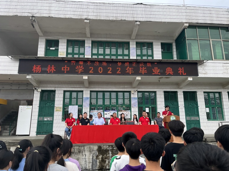 本网讯 6月20日上午11时,杨林中学隆重举行“青春不散场,梦想正远航”2022年毕业典礼,全体九年级同学和毕业班老师参与活动。典礼由教务主任黄紫星主持。 10时50分,在《手牵手》《感谢》的背景音乐中,九年级118名同学步入会场,毕业班老师和行政人员在主席台就座。 政教主任夏晖飞临别细叮咛:把学习当成品质;把感恩当成一种责任;把诚信当成一种实力。今天的分别是为了将来更好的团聚,期待着同学们功成名就、再来母校团聚的那一天。 毕业生代表黄乐、罗思婷同学分别发言,感谢三年以来所有老师对同学们的谆谆教诲,感谢三年以来朝夕相处的亲爱的同学,感谢任劳任怨、无悔付出的爸爸妈妈。表示要永远保持母校的优良学风,不断地、踏实地学习新的知识,不断地充实自己、完善自己,履行“今天我以杨中为荣,明天杨中以我为荣”的神圣诺言。教师代表谌梦瑶老师深情发言,表达了息息相通的师生情谊。 在依依惜别的时刻,校长谌更生最后致辞,他勉励同学们:要有梦想,要有担当,要有情怀,要有信念,要有境界,要有原则。在以后的日子里,不要忘记母校就在你们身边,母校愿意与你们共享成功、分享快乐、分担风雨,母校将永远牵挂你们,关注你们,支持你们,祝福你们! 最后全体同学向主席台上的老师深深地鞠上一躬,大声喊出“老师,您辛苦啦!”,音乐响起《明天会更好》《祝你一路顺风》,同学们掌声欢送老师退场,典礼结束。据悉,这是杨林中学首次举行这样隆重的毕业典礼。(通讯员:欧阳跃科)
