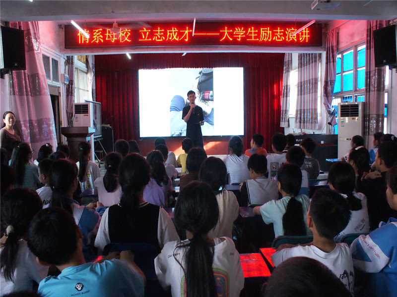 本网讯 6月17日下午,清塘铺镇第一完小全体六年级毕业班学生汇聚学校多媒体室,参加学校组织的以“情系母校、立志成才”为主题的大学生励志演讲活动。 本次活动的主讲者是曾经毕业于该校83班的学生袁则,他目前就读于上海大学,攻读金融专业。作为校友,他主动联系前来母校给六年级毕业班学生作一次励志演讲。他演讲的题目是《放开眼界,追逐梦想》,并制作了图文并茂的精彩视频。他谆谆告诫每位学子:要从小树立远大理想,志存高远,树立为祖国、为人民、为党作贡献的雄心壮志。要以德树人,从小培养自己的崇高品质,道德高尚才能行稳致远。要刻苦学习,掌握各类知识,有真才实学方能实现自己的梦想。要开阔眼界,追求上进,紧跟时代步伐,并能超越自我。要学会感恩,学会合作,学会尊重,学会健体。他在演讲中紧扣自己成长与求学的经历与感悟,对弟弟妹妹们作了情真意切而又催人奋进的演讲,感动了在场的每一位听众,不时获得了大家的阵阵掌声。同学们深受启发与教育,表示将不负韶华,扎实求知,磨砺奋进,努力成长为对社会有用的人才。(通讯员 罗新初 刘继)