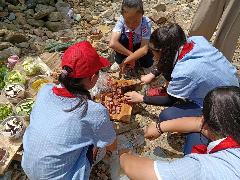 本网讯 6月15日,校长熊卫军带领全体行政、少先队大队部的学生干部在马路镇大旺村开展了一次别开生面,精彩纷呈的社会实践活动。在绿水青山中,宁静的乡村里闪现着忙碌的身影,到处洋溢着孩子们欢快的笑声。 活动中,学生们在老师的指导下分工明确,组织得当,来了一次生活技能的大提升。一个个精心搭建的灶台,一碗碗香喷喷的菜肴,无不充盈着孩子们的辛勤汗水。在烈日下面把切菜当成一种快乐,在烟熏火烤中体现人间烟火,在不停奔波中感受平日生活的不易,所有的这些,都将成为孩子们内心深处永恒的记忆。 此次活动,锻炼了同学们吃苦耐劳的意志,提升了团队协作的意识,加深了对生活的体验,感受到了在学习之余的快乐,练就了生活的必备技能。(通讯员 邓翠玲 谌球)