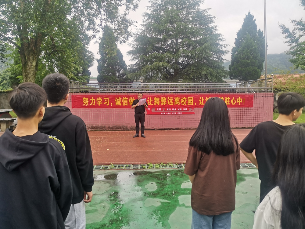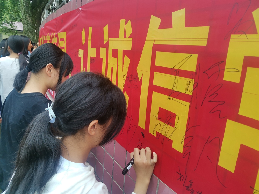 本网讯 6月14日上午,随着五星红旗冉冉升起,古楼乡中学隆重举行中考诚信专题教育活动。该校校长刘竟伟作了“诚信是中华民族的传统美德”的专题讲座。该校九年级的夏琳琳代表毕业班学生做“让舞弊远离校园、让诚信常驻心中”的国旗下讲话。七年级学生也列队参加了该教育活动 在讲话中刘竟伟分享了五个诚信故事、谆谆告诫同学们:诚信是有高尚道德水准的人最为宝贵的品格;高尚道德的人提高思想品格,最根本之点是在诚信上下功夫。“积土成山,风雨兴焉;积水成渊,蛟龙生焉;积善成德,而神明自得,圣心备焉”。诚实守信,重在实践与积累。他呼吁同学们不论在什么考试中要“以实力争取优异成绩,以诚信展现良好学风”;无论在什么时候都要谨记“相勿以善小而不为,勿以恶小而为之;去小恶而从善,积小善成大德,做一个堂堂正正讲诚信的中国人”。他的精彩演讲赢得同学们一阵阵热烈的掌声。 最后校长组织同学们学习中考考务手册中《温馨中考十三提示》以及《考生违纪舞弊处理规定》;该校八、九年级学生以班级为单位, 在诚信中考的宣传横幅上郑重签名。(通讯员:檄文) |