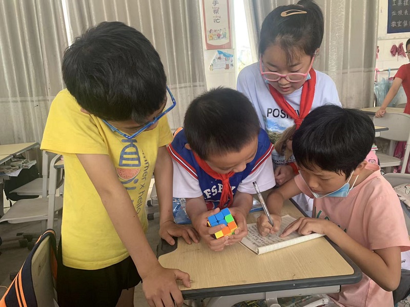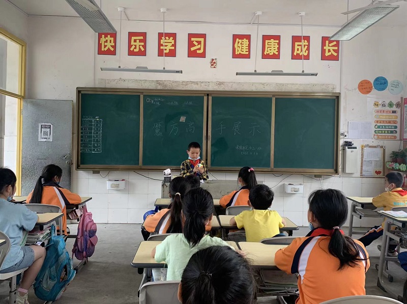 本网讯 “同学们快点吃完早餐,魔方表演马上开始啦……!”6月14日,南金乡完小三年级一班的学生在班主任老师罗倩的组织下,开展了玩转魔方的班级活动。 该班老师在“双减”政策的落实下,有意识地培养孩子的观察力、专注力和记忆力。也通过近期大家访活动,得知班上的贺奇韬同学是玩转魔方的高手。“贺奇韬加油、贺奇韬加油”班长夏奕茹大声地叫喊着。一分钟不到,一个三阶魔方就被他复原了,此时的大家惊叹不已,纷纷送上掌声,投来羡慕的目光。同学们也百般疑惑,抛出各种问题,贺奇韬同学一点都不吝啬,告诉大家方法及步骤。“今天真开心,我也会玩魔方啦!”贺佩玲同学说道。 魔方不仅仅是益智玩具,同时也是一种教学用具。通过此次活动,同学们体会到了分享带来的快乐,并且再想一想、动一动、记一记的过程中,体验了魔方带来的快乐。班上的同学都赶紧行动起来,一起挑战我们的魔方冠军吧。(通讯员 卢妹)