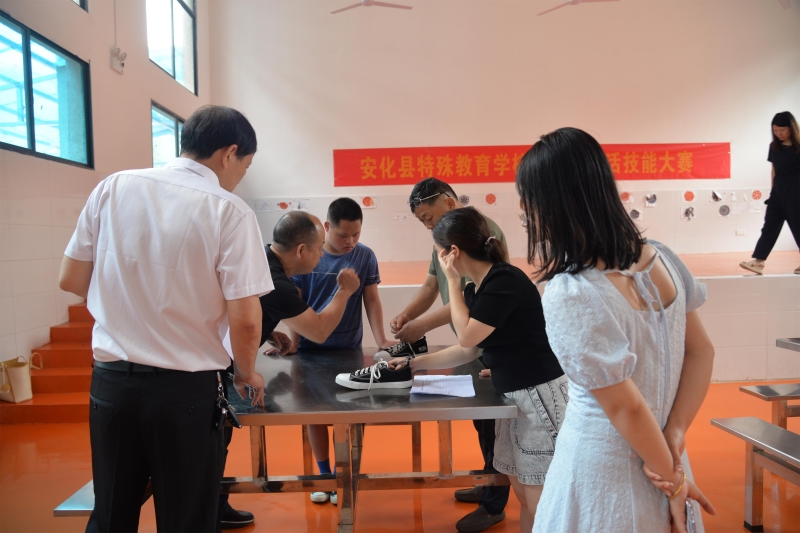 本网讯 6月10日上午,安化县特殊教育学校举办了首届生活技能比赛暨益阳市特殊教育首届生活技能选拔赛。 本次比赛由教导处牵头主办,比赛项目为叠被子、系鞋带、整理收纳箱,参赛对象为特校全体学生。比赛过程中,学生们个个情绪高涨、神情专注,唯恐在比赛中落后于他人。虽然训练的时间不长,但在比赛中却毫不示弱,有条不紊。 评委老师秉承公平、公正的原则,从比赛速度和比赛要求等方面对每个学生的参赛过程进行了综合计分,评出了一、二等奖。大赛共决出种子选手6名,他们将代表学校参加全市特殊教育生活技能大赛。 本次活动的开展进一步培养了学生的生活自理能力,锻炼了他们日常生活技能。同时也让他们体验到了自我服务的快乐,懂得了自己的事情自己做,为学生阳光、自信、健康地生活和更好地融入社会打下坚实的基础。 |