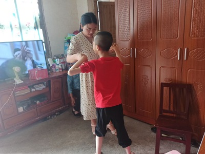 本讯网 6月8日下午,大福镇新桥完小教师张婷、伍林华来到建档立卡贫困对象--“非在校”残疾学生彭家旺家里,开展本月的第一次送教上门活动。该校教师伍林华与其母促膝长谈,全面了解孩子的身体状况,随后还搀扶孩子做了一次康复训练。张婷老师擅长于与孩子打交道,她带家旺同学做游戏,在游戏中教他分辨“左右”。保质保量地完成了送教任务。