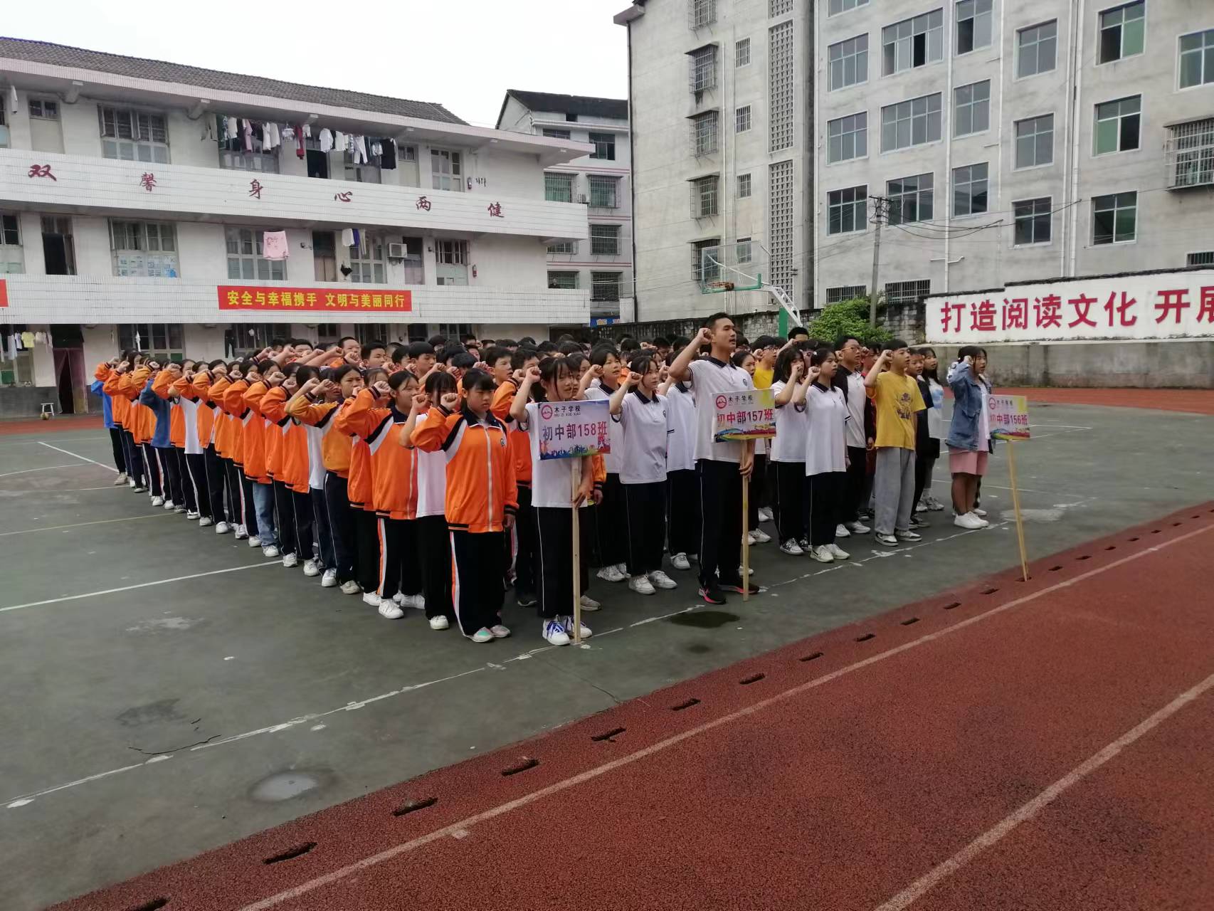 本网讯 6月6日上午7点20分,东坪镇木子学校教导处组织八九年级全体学生于学校运动场举办了诚信考试宣誓活动。出席此次活动的主要嘉宾有:木子学校校长戴前辉,教导主任谌勇,政教处主任谌明山及刘佩、廖倩、汪艳纯、万少东等班主任老师。学生代表黄亮在国旗下作有关诚信的演讲,进一步让同学们了解了诚信的重要性。谌明山热情洋溢的讲话为宣誓活动拉开了序幕,他希望同学们能够本着诚实守信的态度在考试中取得优异的成绩,从而不断继承和发扬中华民族的优良传统,为自己的人生道路勾画出最美的线条。优秀学生代表李德英带领全体同学庄严宣誓,整个活动现场气氛庄重严肃,充分体现了同学们对诚信考试践行的决心。