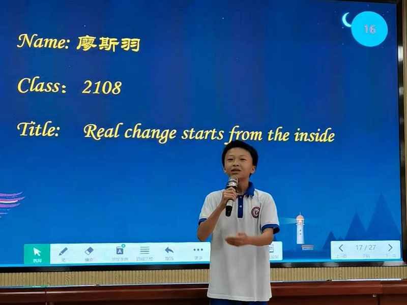 本网讯 6月1日下午,安化县紫薇中学举行“英语之星”英语演讲比赛决赛,来自8各班级共24名同学参加比赛。此次活动历时两周,首先在各班进行初赛,每班选派3名优秀选手参加决赛。 决赛中,参赛选手们都个个精神饱满,有的学生风趣幽默,有的学生慷慨激昂,以流畅的英语表述了自己的观点,赢得了观众的阵阵掌声。从他们自信的脸上和充满情感的演讲中,老师们看到了学生学习英语的自信,同时,评委老师也对选手们的演讲进行了细致的点评。 此次活动既是该校扎实落实“双减”政策的有力证明,也锻炼了学生口语交际能力,丰富了校园文化生活。(通讯员 张丽莉 李晴)