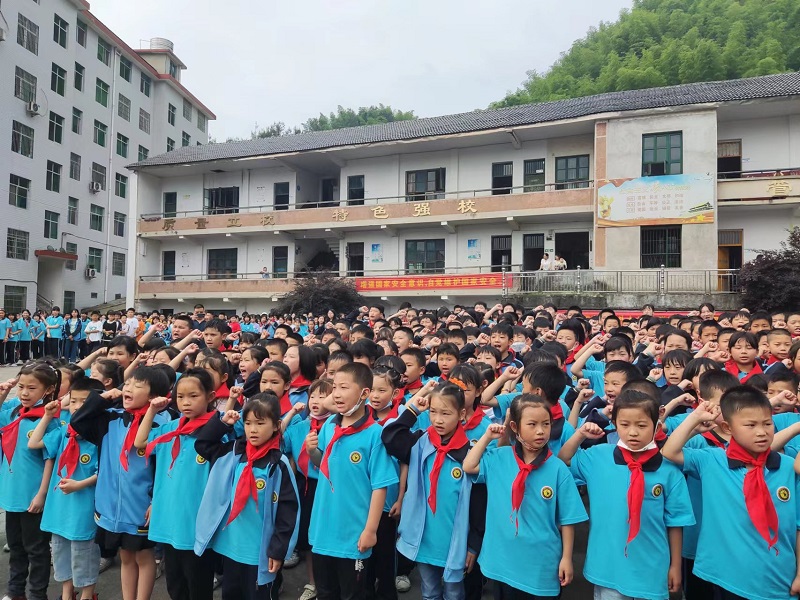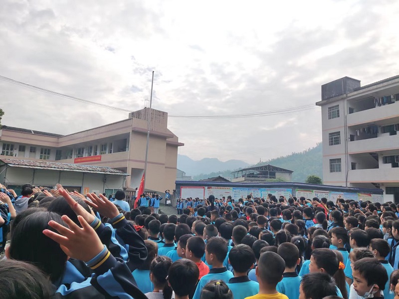 在鲜红旗帜的映射下,在星星火炬的指引下,全体少先队员高唱《中国少年先锋队队歌》,歌声中充满每一位新队员的自豪与骄傲。该校少先队辅导员陈清宣布新入队队员名单并带领新队员宣誓。