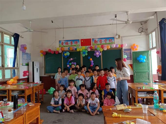 本网讯 6月1日,大福镇新桥完小以自己独特的方式庆祝六一儿童节,师生倾心合力,欢度佳节。 庆祝活动以班为单位,不拘形式。课桌一调整,哪里都是舞台,抬手一装扮,精彩自然来。“那气球是谁布置的?想拜师!”这是洲子老师的声音。原来宁思与全班同学一起,用勤劳的双手扎了许多气球,还拼了图案,既经济卫生美化了教室又培养了孩子们的动手能力。刘纯班、姜文成班、曼子班正欢歌笑语,原来是师生们在表演才艺。“婷姐真是好有心哦,有酸梅汤、自制原味奶茶,还有……”这是四年级办公室老师透露给我的消息,“孩子们听话、肯学,婷姐破费也值”。那几个硕大的蛋糕又是怎么回事呀?原来是四年级三个班正准备为孩子们过生日,真是一个好有爱的生日。一二年级也在自己的空间,享受着属于自己的欢乐。 只有四个年级的新桥完小,以她自己的方式,守护着欢乐和童真,传递着暖人的温情。