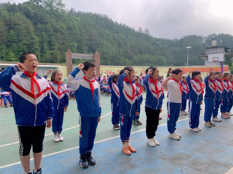 本网讯 5月31日,烟溪镇陈竹小学举行“红领巾心向党,争做新时代好队员”庆六一少年入队仪式,对优秀少年和少先队员进行表彰奖励,19名新队员庄严宣誓,光荣地加入了中国少年先锋队这个大集体。