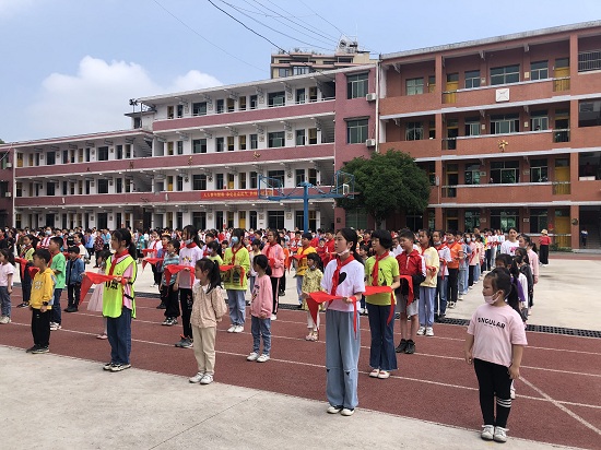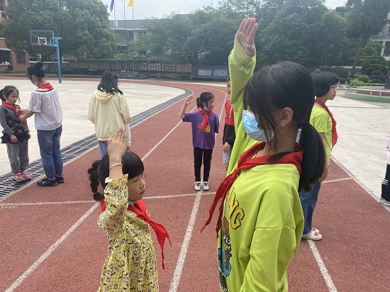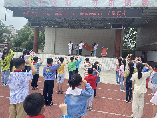 本网讯 5月31日上午,平口完小全校师生在操场上举行了“喜迎二十大,争做好队员”为主题的入队仪式。艳阳高照,大家洋溢着开心的笑容,一、二年级的新队员们等待着他们人生中第一次意义重大的、激动人心的时刻——加入光荣的少先队组织。 入队仪式上,大队辅导员刘倩静老师宣读了新队员名单,并对新队员入队表示热烈的祝贺。114、115、116中队的少先队员为一、二年级新队员们佩戴了红领巾,在大队长戴雅琪同学带领下,队员们进行了庄严地宣誓。 随后,老队员代表和新队员代表分别发言,表达了他们无比愉悦的心情和积极向上的决心。一声铿锵有力、整齐划一的“时刻准备!”响彻了整个校园,彰显了未来“星星之火”的昂扬斗志。伴随着庄重的退旗曲,隆重而神圣的入队仪式圆满结束了。 在光荣的队旗下,在星星火炬的鉴证下,平口完小103名孩子迈开了人生成长的第一步。