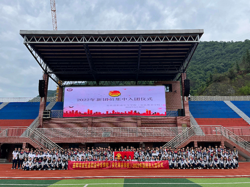 本网讯 5月30日上午,安化县职业中专学校(安化黑茶学校)在该校田径场隆重举行2022年新团员集中入团仪式,高一高二年级4300余名师生参加,校团委书记刘冰丽主持本次活动。 入团仪式在庄严的国歌声中拉开了序幕,刘冰丽阐明了本次入团仪式的意义并宣读了224名新团员的名单,每位新团员在各班班主任手上郑重地接过团徽并光荣而激动地将团徽佩戴在左胸前。新团员龚欣宇带领所有团员高举右拳,庄严宣誓,用最洪亮的声音,最真实的心声表达着自己对共青团的无限向往。龚欣宇同学代表所有新团员发言,表示一定牢记入团誓词,时刻以团员身份严格要求自己,不断学习、奋发进取,履行好团员的职责和义务,努力提升自己的思想和素质。 最后,刘冰丽对新团员提出了殷切希望,要求他们在以后的学习生活中要坚定理想信念,牢记团的宗旨,努力学习,积极向上,树立好团员的鲜明形象,做合格的共青团员。随后,入团仪式在团员们嘹亮的团歌声中结束。 入团仪式简短、庄重、热烈,同学们接受了一次严肃而庄重的教育,他们的心灵更是经历了一次良好的洗礼。大家纷纷表示在今后的学习生活中,一定团结勤奋,锐意进取,不负青春,不负韶华,以实际行动展示共青团的先进性。(通讯员:陈爱辉 刘冰丽)