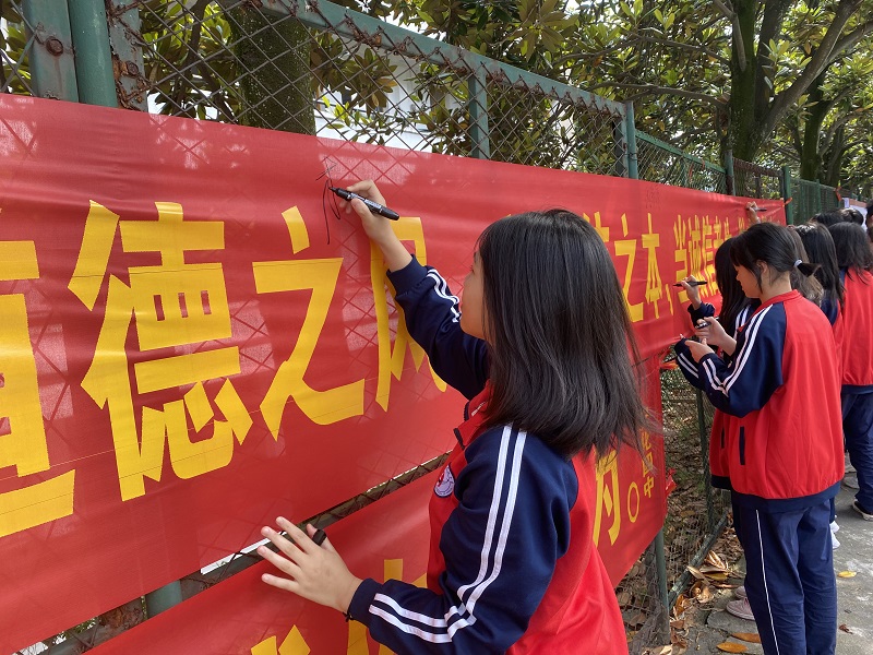 本网讯 5月23日7点,安化四中全体学生在团支部的带领下参与“2022年学考诚信参考教育仪式”。 学生代表张丁仃领诵诚信参考誓词,并在课间操时间进行诚信参考签名活动,号召全体从小做起,从自身做起,以实力争取优异成绩,以诚信展现良好学风。 此次诚信参考教育活动通过诚信参考主题报告、诚信参考宣传栏、主题班会等多种形式展开,向全体师生传递了诚信教育的重要性、必要性和有效性,详细列举了相关法律法规,要求学生知规守法、诚信参考,该校全体学生也充分明晰了诚信参考的重要性,并对此作出了郑重承诺。作为四中学子,将会在剩余的冲刺时间里,勤勉刻苦,摒弃杂念,全力备战学考!(通讯员:王惠雯)