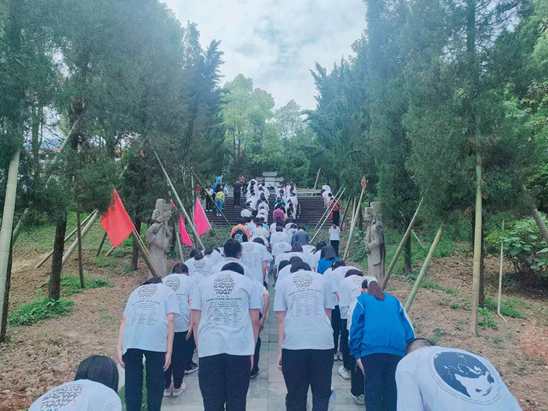 本网讯 5月23日下午,安化三中组织高三年级全体师生徒步前往陶澍陵园,举行以“聆听先贤故事,传承经世情怀”为主题的爱国主义教育活动。 该活动旨在让这些高三学子毕业离校之际,复习迎考之余,以特定的形式,于特定的场合,低首聆听感悟,抬头面向未来! 高三全体师生来到陶澍陵园,整队肃立,行鞠躬礼,学生代表献花,主管高三年级的副校长吴汉军简要介绍了干国良臣陶澍的故事,及其对湖湘崛起的先导作用。 安化三中建址于陶澍官坻,在注重立德树人的新高考背景下,陶澍文化是该校很好的校本教育资源,这些年来,安化三中也特别注重资源的利用与形式的创新。