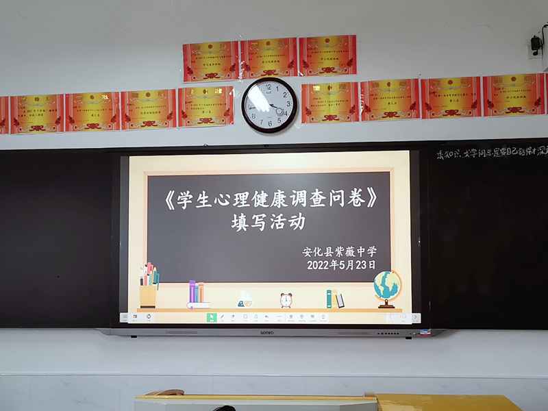 本网讯 5月23日下午,安化县紫薇中学在该校党支部的引领下,学生处、校团委和心理咨询室一起组织开展了学生心理健康调查问卷活动。活动在该校各班教室进行,各班主任认真组织,学生们积极参与,按照自己内心真实的想法认真进行填写。 此次学生心理健康调查问卷活动能客观、公正地反映初中生心理健康问题的形成原因,进一步了解学生学习心理、人际交往现状、承受挫折能力等方面,准确地把握学生的心理动向,对学生的健康成长有一定程度的帮助。 据悉,五月份是该校的心理健康活动月,此次活动是其中的一项内容,其他心理健康类活动正在陆续开展。该校一直非常重视学生的身心健康,以各种形式的德育活动对学生进行心理健康教育,促进学生的身心健康发展。