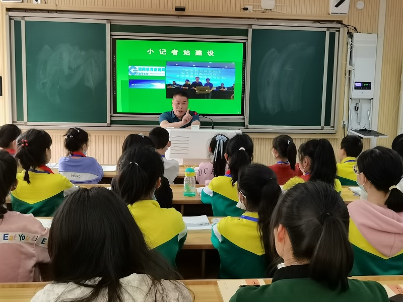 通过简单而又庄重的授牌和频证仪式后,安化县教育局办公室副主任、小记者站总辅导老师王枚生为孩子们开展辅导。王枚生从小记者的培养目标、基本素质以及如何以学生视角采写新闻稿件等方面进行了详细讲解,他希望小记者们在老师们的精心辅导下,爱新闻、勤思考,爱提问、广交友,爱写作、勤练笔,爱学校、讲团结,把学校发生的大事情和师生中的好典型挖掘出来、宣传出去。在近一个小时的听课过程中,小记者们时而认真倾听,时而凝神思索,时而认真地做着笔记,对小记者这个新领域充满了好奇与渴望。