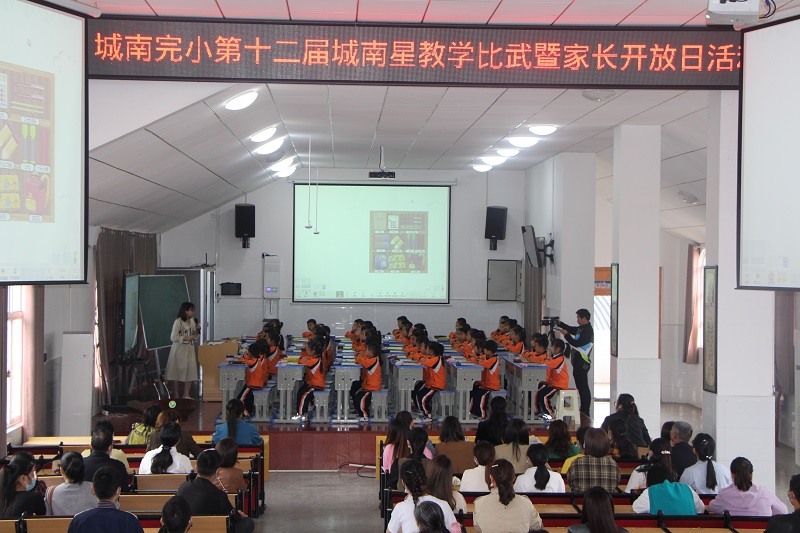本网讯 5月10日至12日,城南完小迎来了第十二届“城南星”教学比武暨家长开放日活动。 本次活动由学校教务处组织安排,涵盖数学、英语、美术等学科,共25位老师参加各教研组的初赛,并遴选出11位教师参加此次学校复赛。这是该校落实“双减”政策,全面减轻学生学业负担,提升学生综合素质,提高教学质量的一次大研讨和大练兵。 开幕式上,城南完小校长张密田作了题为《重教育人功百代,尊师兴邦德千秋》的讲话,他强调教育教学工作永远是学校的中心工作,是身为教育人的主责主业,要着力打造“高效课堂”,减负不减质量。 比赛中,青年教师们尽情发挥自身优势,结合自己所选课程精心备课,充分挖掘教材,各展所长,有的善于组织教学,有的教学设计有特色,有的善于营造课堂氛围,课堂教学精彩纷呈,数学课多种形式的思维引导、作业的创新设计,美术课精美的板书、学生精彩的作品,英语课学生流利的口语表达,都给老师们留下了深刻的印象。经过为期三天的角逐,最终王代媛等5位教师获得了本次大赛一等奖。 此次活动既为老师提供了一个展现风采、快速成长的机会,也为其他教师搭建了观摩学习、研讨交流的互动平台,同时邀请家长走进课堂,加强了家校合作。