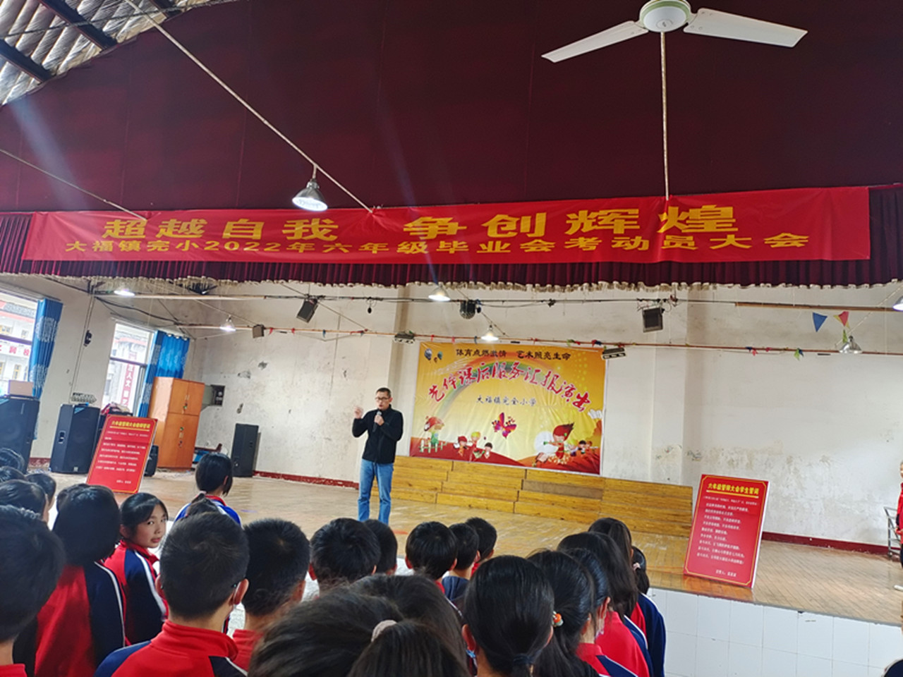 本网讯 5月11日下午,大福镇完全小学六年级全体师生在学校食堂举行决战会考誓师大会。全体师生济济一堂,大会秩序井然,高潮迭起,展现出了毕业班学子良好的精神风貌。 誓师大会上,学生代表、教师代表和学校领导相继作了热情洋溢的发言。学生代表肖恩俊首先表明决心:我们一定要用努力和汗水去充实每一天,以自己的努力争取优异的成绩。教师代表卢躲兰的发言声情并茂,字字流露真情,充满了如母亲对孩子般的殷切期望与嘱托。校长林颖的动员讲话将大会的气氛推向了高潮,他勉励每一位六年级学子把握机遇,勤奋努力,要以一颗火热的心投入到紧张的复习备考中去,让小学毕业会考成为人生的第一个转折点。接着全体学生郑重宣誓:“不负父母期盼,不负恩师厚望;不负青春理想,不负母校培育。争分夺秒,全力以赴!”六年级全体教师也激情宣誓:“我们为你们保驾护航,我们为你们摇旗呐喊。我们与你们同甘共苦,我们与你们风雨同舟!” 春风得意马蹄疾,最是金榜题名时。相信这次大会让同学们时刻牢记“奋斗的青春最美丽”,把握时间,主动出击,决胜2022年毕业会考。(通讯员 黄红) |