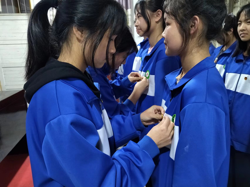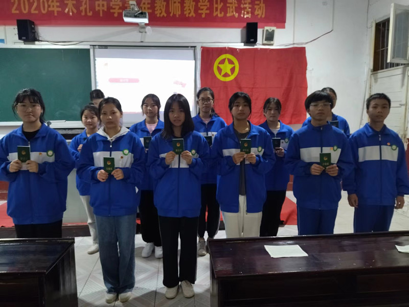 本网讯 5月9日下午16:30,大福镇木孔中学团支部在多媒体教室举行新团员入团宣誓仪式。 在庄严的国歌声中新团员入团宣誓仪式正式开始,该校团支部书记李郁姣宣读新团员名单,本期共有12名学生加入团组织。优秀团员们给各位新团员佩戴团徽,在九年级优秀团员代表罗依依同学领誓下,各位新团员面向团旗、右手握拳举过肩膀,在团旗下庄严宣誓。来自九年级的黄依田同学在代表新团员发言中说道:“一定要努力学习,做品学兼优的好学生,以优越的成绩回报老师、回报学校、回报祖国、回报社会。” 活动中,校长刘辉向各位新团员表示了热烈的祝贺和真挚的欢迎,他说:加入团组织是人生的新起点,希望同学们不仅在形式上入团,更要在思想上入团,今后要更加严格要求自己,严格遵守团章,履行团员义务,时时处处起模范带头作用。 这次入团宣誓活动在欢快激昂的中国共青团团歌《光荣啊!中国共青团》中圆满结束。活动的开展,加强了学校共青团队伍建设,也是学校在迎接中国共青团100周年对学生的一次革命传统教育,让更多的学生不忘初心永远跟党走,争做合格共青团员。(通讯员:刘志平)