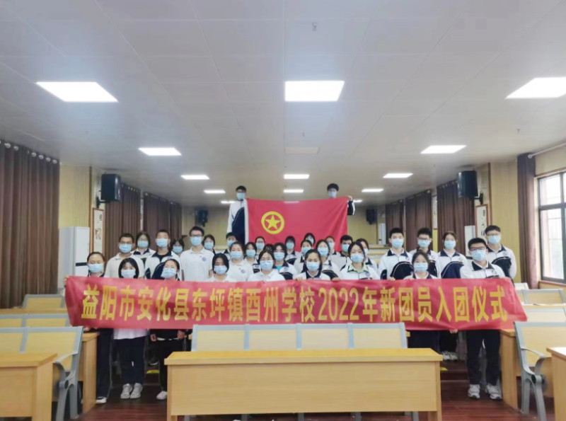 本网讯 值喜迎二十大、中国共青团成立100周年之际,东坪镇酉州学校于5月9日举行了建团100周年主題团日活动暨新团员入团仪式。 伴随着庄严的国歌,入团仪式正式开始,校团委书记彭湘简要介绍了团组织,宣读了新团员名单,新团员们经过层层选拔和校团委的考察,终于成为一名光荣的共青团员。随着名单的宣布,新团员们一个个站立起来,庄严肃穆,由老团员给他们佩戴光荣的团徽。老团员为新团员佩戴团徽,这是一种共青团精神的传承,这是一种荣耀的象征。带上光荣的团徽后,团员们面对鲜艳的团旗,紧握右手举起过肩,在九年级团支部书记黄徐笑同学的领誓下,庄严宣誓!最后,新团员代表1903班夏媛茜、老团员代表1902班黄徐笑、进步青年代表2002班刘博威三位同学发表了精彩的演讲。 本次入团仪式在嘹亮的团歌声中落下了帷幕,入团只是人生新的起点,同学们纷纷表示将以一名优秀的共青团员的标准来要求自己,努力学习,不断进步! |