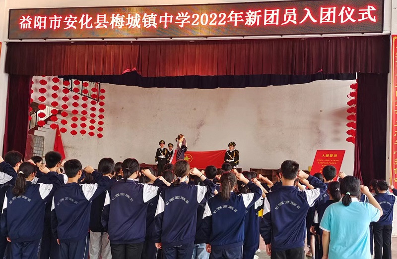 本网讯 5月6日下午,梅城镇中学举行了2022年新团员入团仪式。 入团仪式在《光荣啊,中国共青团》团歌歌声中拉开序幕,校团委书记赵霞宣读新团员名单并为新团员们佩戴上了团徽,希望新团员不断继承和发扬中华民族的优良传统,努力培养责任意识和感恩意识,诚信做人,自强不息,努力加强自身道德修养。 新团员在团旗面前,庄严地举起右手,用整齐而洪亮的声音宣读着入团誓词,雄壮的誓言,久久回荡振奋人心。 副校长李德良向光荣入团的同学们致以诚挚的祝贺和美好的祝愿,同时指出,新团员应当坚定崇高理想,永存高远之志;要勤奋学习,砥砺品德修养,筑牢成才之基;要发挥模范作用,唱响文明之歌。希望全体团员在学习和生活中把青春誓言、入团誓词内化于心,外化于行,争当先锋、勇担责任、引领风尚,在校园生活中做好表率,追求卓越,敢为人先。(通讯员:蒋志球)