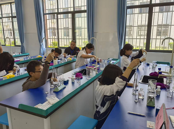 在酉州学校考点候考区域,学生们有条不紊地按照名册一个接着一个抽签、分组、填写计分表,在考场里考生们沉着冷静进行实验操作,监考老师们严肃认真监考,整个考试过程秩序井然。
