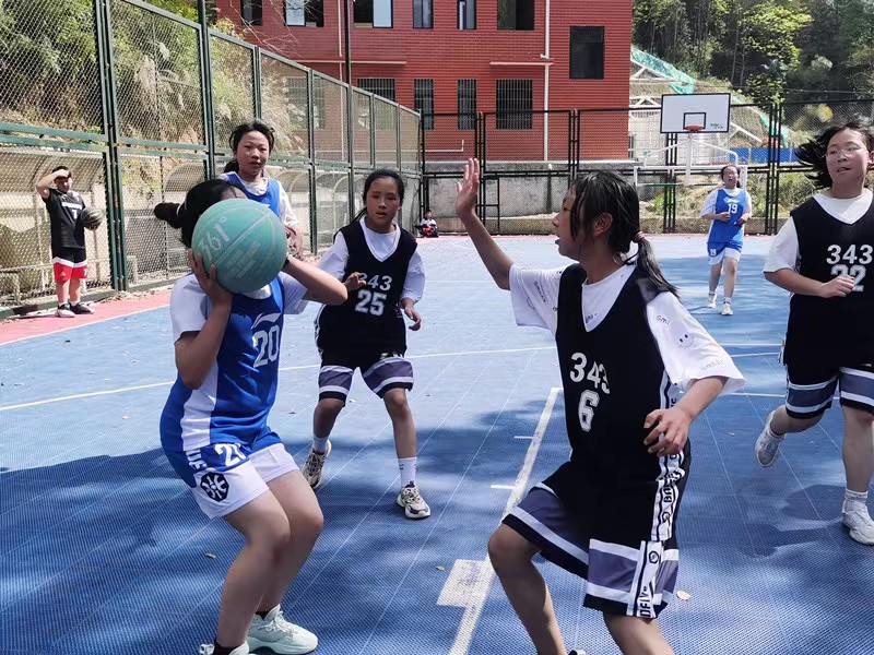本网讯 “354,加油!”“358,加油!”4月24日,梅城镇中学东华校区运动场上呐喊声不断。这是本届七年级班级篮球赛的决胜时刻。