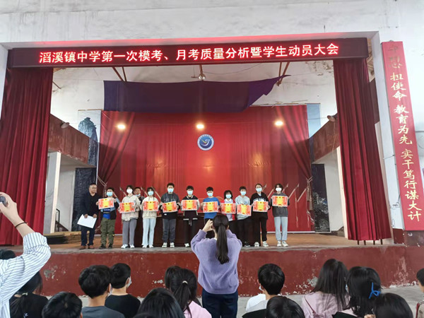 本网讯 4月22日下午,滔溪镇中学在该校大礼堂召开2022届毕业科目第一次模考质量分析大会,大会由该校校长刘新华主持,该校行政人员、毕业班教师和八、九年级学生参加。 会议开始,该校教务主任刘云宗就2022届毕业科目第一次模考进行质量分析。他首先将该校九门毕业科目第一次模考质量数据与全县其他学校进行比较分析,肯定取得进步的地方,指出存在的差距和需要努力的方向。然后,逐一对每一科各班质量数据作比较,要求所有班主任、每一位任课教师和学生,增强质量意识、明确目标、把脉问诊、查找不足、蓄力前行。 大会中,有四位毕业班班主任、两位任课教师代表及一位学生代表发言,他们或做经验介绍,或表达决心,发言,言辞恳切,信心满满。全体人员齐诵由滔溪镇中心学校校长刘忠发布的中考动员令。诵读中,全体人员精神抖擞、斗志昂扬,眼神充满着顽强与坚毅,声音澎湃着豪迈与自信。接着,对模考中表现优异的学生进行了表彰与奖励。 刘新华在总结中指出,分析是为了查找差距,认识自我,明确方向。希望全体毕业班师生卧薪尝胆,积聚力量,砥砺奋进。(通讯员 李祥民)