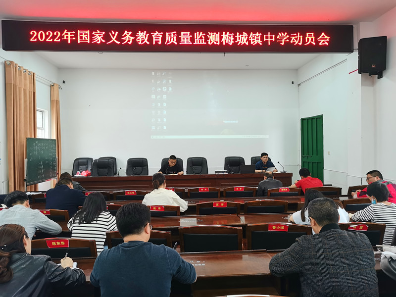 本网讯 4月22日,梅城镇中学召开了2022年国家义务教育质量监测动员会。 会上,教务主任蒋三佰传达了县教育局迎接国家质量监测相关文件精神,解读了国家义务教育质量监测的目的和意义以及监测的主要内容,并对此次质量监测各项前期准备工作进行了部署,为迎国测工作做好充分准备。校长喻选民对监测工作具体要求:一要高度重视国测工作,认识开展国家义务教育质量监测工作的目的和意义;二要每个教师明确工作职责,每位学生知道检测的内容,如何开展迎测工作,统一思想,形成共识,加强宣传,强化培训;三要精心组织,规范操作,扎实工作,确保学校质量监测工作顺利进行,并取得实效。 2022年全国义务教育质量监测工作将在5月25日至26日进行。该校作为样本校参与此次监测工作。监测对象为八年级学生,以及相关年级英语、音乐、美术教师。(通讯员:蒋志球)
