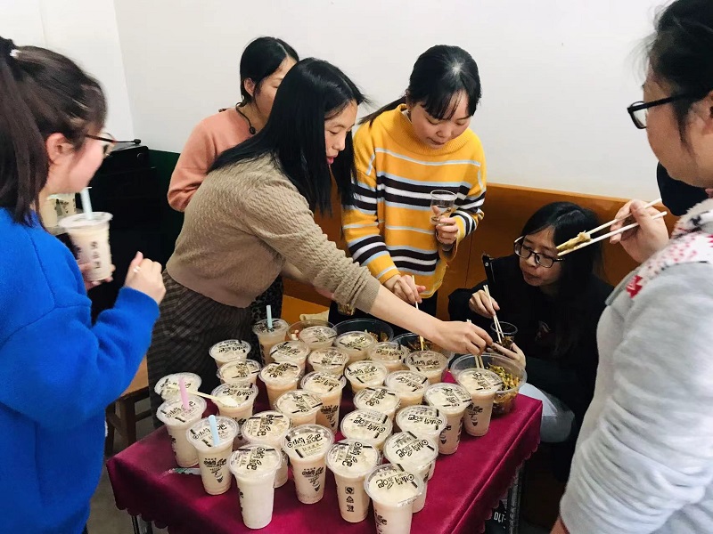 谷雨时节,南金乡完小校长夏晶给全校教职工带来一份温情的节日礼物——擂茶。原来,朋友圈里各种晒擂茶的照片,引来老师们的阵阵羡慕。但学校条件有限,不能亲自熬制,于是夏晶自费给该校34名教职工带来了擂茶和小吃。“谢谢校长,总是在羡慕别人,却发现自己才是最幸福的那一个”班主任陈岚感动地说道。