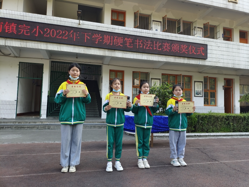 本网讯 4月11日,江南镇完小举行学生硬笔书法比赛颁奖仪式,全校师生参加,教务主任陈娜主持活动。 在颁奖仪式上,陈娜对本次活动进行了总结,并倡导全体师生养成书写好习惯,写一手漂亮中国字,做一个堂堂正正中国人。学校领导姚志军、刘红军、罗武军分别为荣获一、二、三等奖的学生颁奖。 据了解,该校本次活动以“传承中华文化,墨香溢校园”为主题,分初赛、决赛两个阶段进行。初赛以班为单位,决赛由各班推选1——2名优秀选手,学校组织当场书写、评审,最终评选出一等奖四名,二等奖八名,三等奖12名。(通讯员 刘红军)