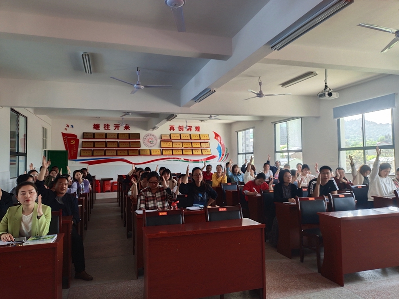 本网讯 4月8日下午,梅城镇望城完小第七届教职工大会第二次会议顺利召开,该校全体教职工参加了会议。会议由学校办公室主任李咏如主持。会议开始前,大家一起观看了小视频《致敬——在三月挥洒汗水的望城教育人》。 大会在嘹亮的国歌中拉开序幕。副校长郭世佳同志致开幕词,随后大会听取、审议、通过了学校工作、工会工作、财务工作和提案报告,大会讨论修改并通过了《望城完小礼仪制度》《望城完小质量奖励方案》《望城完小教师评优评先制度》《望城完小教职工出勤管理规定》《望城完小教师目标管理考核细则》,校长李兴家就代表们提出的相应提案进行答复。 工会主席刘兵闯做总结发言并致闭幕词。他说希望各位代表在各自的教育教学中,认真贯彻执行会议通过的各项决议,全面完成学校工作报告中提出的各项工作和任务,不忘初心、坚定信心、聚力凝心、开拓进取,为学校再创辉煌而努力奋斗,以优异成绩迎接党的二十大胜利召开!(通讯员 李咏如)