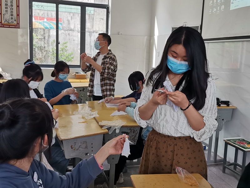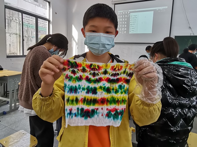 本网讯 4月5日下午,羊角塘镇中学美术室外围观着很多学生,走进一看,原来是美术社团正在开展扎染制作活动。 扎染是中国民间传统而独特的染色工艺,是传统文化也是非物质文化遗产之一。活动中,该校美术老师卢俊和李回阳先向学生介绍了扎染工艺的基本知识、扎染特点和制作技巧,并分发了制作所需的白色纱布和工具。卢老师和李老师互相配合,分组给学生讲解如何扎结和浸染,并展示了扎染的完成效果。学生们在老师指导下,根据自己喜好,折叠出各具特色的形状并浸入自己喜欢的颜色染料。“有创意!”“像烟花!”……扎染完成后,学生们忍不住互相展示自己的作品,每一件作品都是学生的创作,都是独一无二的,五颜六色的小花布绽放在扎染作品展示区,形成了一道独特的风景线。 据了解,在“双减”政策指引下,该校美术社团,通过开设剪纸、扎染、国画、绘画、版画等特色课程,让课后服务充满活力,拓宽了学生们的眼界,提高了学生发现美、创造美的能力,同时让传统艺术得到了传承和发扬,真正将减负增效落到了实处,让“双减”开出了美妙之花。(通讯员:黎娟)