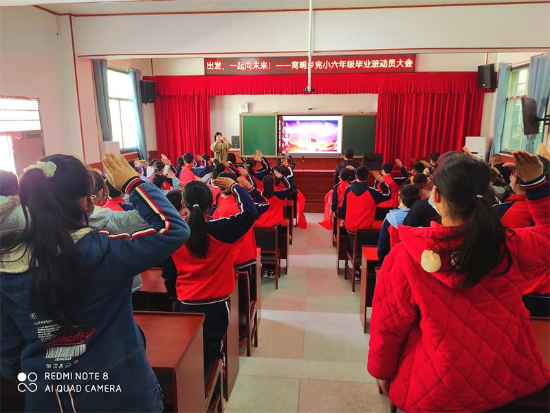 本网讯 3月28日下午两点,高明乡完小在学校会议室举行了“出发,一起向未来”六年级毕业班动员会。六年级95名学子齐聚一堂,姿势整齐划一,举起右拳,齐声宣誓,慷慨激昂、铿锵有力的誓言在会场久久回荡。 本次动员会,由教务处主任何海容主持,学校行政人员、六年级全体师生参加了本次活动。此次动员会主要目的是为了给六年级毕业班的同学们加油鼓劲、释压减压,同时激励同学们肩负起重任,迎接挑战,收获未来。 动员会在雄伟壮丽的国歌声中拉开序幕。六年级教师代表何素芝对同学们进行各学科复习方法指导,字里行间真切流露出了对孩子们浓浓的关心和爱护,并寄予了殷切希望;学生代表刘荣深情地表达了对老师辛勤培育的感激之情,同时也道出了她的信心、决心与梦想;全体师生宣誓并在宣传横幅上签名。该校校长彭晓勇对同学们提出了四点要求:一是常怀感恩之心;二是有明确的学习目标;三是端正学习态度;四是养成良好的学习习惯。彭晓勇的讲话,语重心长,情真意切,使同学们倍感亲切,倍受鼓舞。 此次动员会激发了毕业班同学的学习热情,同学们纷纷表示:要带着恩师的叮咛,怀着必胜的信心,积极进取,努力学习,一定能向学校、向老师、向家长、同时也向自己交出一份满意的答卷!(通讯员 高华君)