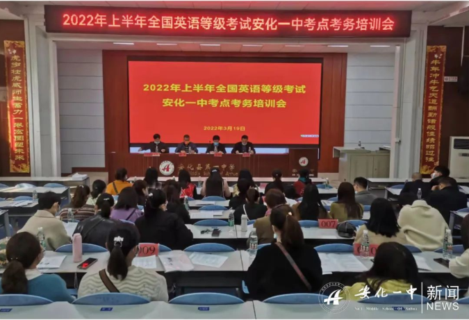 本网讯 3月19日,安化一中召开2022年上半年全国英语等级考试考点考务培训会。县教育局党组成员、副局长李丰年,县第二人民医院副院长李涛参加本次会议。会议由安化一中校党委委员、副校长卢关华主持。 党委书记、校长、考点主考李远喜对考务工作作出强调,要求为考生营造温馨、公正、便利的考试环境,监考老师和相关工作人员要提升纪律意识,规范流程操作,尽全力为学生做好服务工作。 卢关华组织全体考务人员学习考务实施方案,要求全体考务人员要明确职责,熟悉流程,规范操作,确保考试顺利进行。 李丰年强调要严格落实疫情防控要求,加强医疗后援保障,对相关人员进行必要的核酸检测,在疫情防控上不能有丝毫松懈。 会议第二阶段由英语口试主考周红对英语口试主考官进行业务培训。
