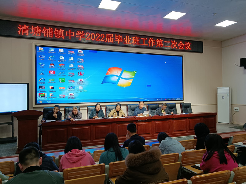 本网讯 3月17日晚,清塘铺镇中学在学校多功能报告厅召开2022届毕业班工作第二次会议。学校行政、全体毕业班教师参加,中心校党建办主任邓朝阳应邀出席,会议由校长谭宏光主持。 谭宏光总结了前一阶段的毕业班复习备考所取得的成效,并针对复习过程中存在的问题指出:复习思路开步要清,过程迈步要实,发现问题立行立改,集体备课不能懈怠,既要充满信心,又要关爱关注每一个学生。他还部署了中考誓师大会、课堂验评等工作。邓朝阳宣读并分析了2021届中考各学科情况,她希望全体毕业班教师复习思路要清晰,时间安排要合理,复习课堂要高效,提质举措要创新。 通过本次会议,全体教师进一步统一了思想,坚定了信心,明确了目标,找对了方法,相信通过不懈努力,该校2022届中考一定会再创佳绩!(通讯员:张剑文、吴雄)