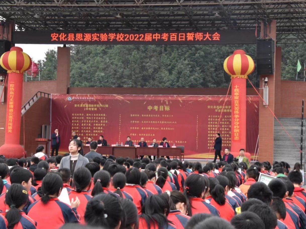 本网讯 3月10日上午,安化县思源实验学校全体师生欢聚操场举行2022届中考百日誓师大会,大会由教科室副主任张乐主持。 活动在嘹亮的国歌声中开始,副校长王黎明发布动员令,指出当前时间的紧迫性,并为同学们加油鼓劲,希望同学们脚踏实地,不负青春。九年级组长陈郁做动员报告,就中考复习心态进行疏通指导,明确中考是身体和心理的双线作战,希望同学们立志当高远,决胜在今朝。班主任代表刘智颖和任课教师代表曾颖分别表态发言,就学习态度和学习方法进行了提醒和点拨,让同学们醍醐灌顶,受益匪浅。全体初三学生和毕业班教师进行冲刺宣誓,气吞山河,慷慨激昂。最后校长刘巩元做总结发言,他号召全体同学树立必胜信心,排除一切干扰,认真备考,以良好的心态迎接中考。他期望九年级全体师生凝聚全部力量,以坚定的信心、顽强的意志和科学的方法全力以赴地提升实效,去摘取成功的硕果,铸就新的辉煌!(通讯员龚晶) |