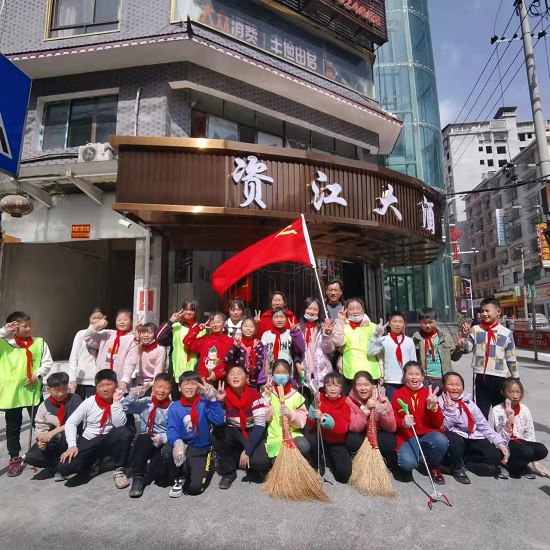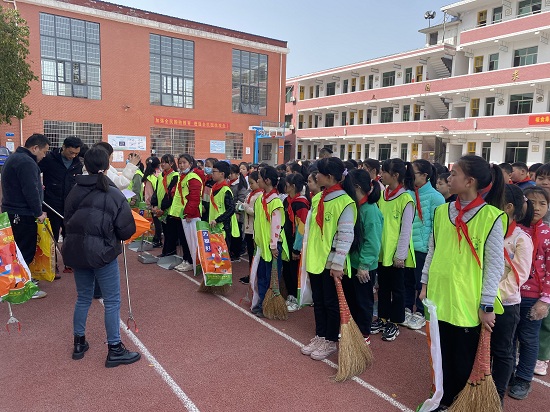 队员们在“雷锋志愿服务岗”党员教师和小队长的带领下,分成九个小分队,开展义务奉献活动。一、二、三队队员准备好簸箕、扫帚、拖把、抹布等清洁工具,来到学校周围,擦拭各个上学路口楼梯间的扶手,捡拾垃圾、清理卫生死角。其余队队员则分组走进平口镇各个主街道,清扫主街道两边的垃圾,积极宣传保护环境,在队员们的清扫下,街道各处变得赏心悦目,赢得了群众的一致好评。
