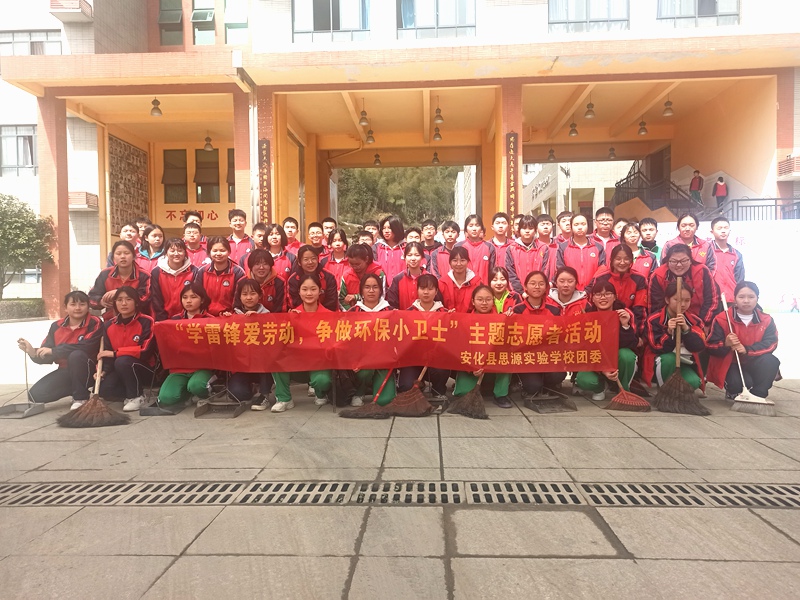 本网讯 3月7日中午,安化县思源实验学校德育副校长李繁荣,政教处主任周云,团委书记李海军等老师,带领全校58名团员,开展了学雷锋志愿服务活动,将学校周围和玉溪村小溪沿线进行了彻底清扫,让周边环境焕然一新。