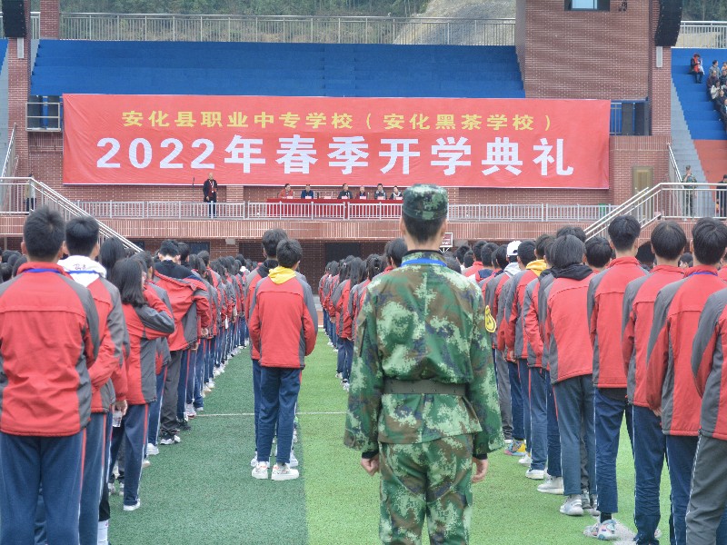 本网讯 寒雪梅中尽,春风柳上归。3月2日下午,安化县职业中专学校(安化黑茶学校)在田径场隆重举行2022年春季开学典礼。学校领导班子、全体师生、学生准军事化管理教官参加。典礼由校党委委员、副校长冷响林主持。 庄严的升旗仪式后,由学校党委委员刘纯带领全体教师进行宣誓。全体教师高举右拳,面对国旗进行宣誓,坚守讲坛,教书育人,把全部精力和满腔真情献给教育事业,为社会文明进步奋斗终身! 学校党委副书记、副校长李会团发表了激情澎湃的新学期讲话。他充分肯定过去一年全体安职人的骄人战绩,学校获省、市、县级集体荣誉20项,学校重点工作成绩突出,毕业生质量稳步提升,引领示范作用不断凸显,校园建设硕果累累,各级各类评比竞赛活动喜报连连。同时,对新的学期寄予学子们新的愿景:一是要坚定远大理想,明确奋斗目标;二是要塑造优良品格,勇于担当大任;三是要学会珍惜拥有,携手共赴未来。 校长奖学金特等奖获得者、高二年级会计事务2032班仇诗意作为学生代表发言。她鼓励同学们端正态度,坚定信念;善于奋斗,敢于探索。她号召大家以坚如磐石的信心,只争朝夕的劲头,坚韧不拔的毅力,精诚团结、齐心协力,在奋斗中书写新的辉煌,用自己的智慧和汗水,绘就幸福生活的美好画卷。 学校党委副书记、纪检委员李建民宣读《安化县职业中专学校(安化黑茶学校)关于表彰2021年下学期学生优秀集体和先进个人的决定》。本次表彰共计15个奖项,其中包括1533人次先进个人,16个志愿者服务优秀班级,39个优秀班级和195间阳光寝室。(通讯员 蒋碧柳)