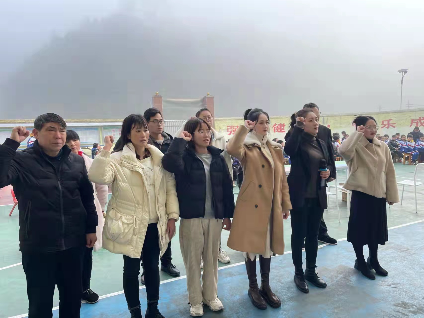 在庄严肃穆的升旗仪式中,开学典礼拉开了帷幕。典礼开始,全校师生分别面对国旗庄严宣誓。然后学校对上学期取得优异成绩的教师和学生进行了表彰颁奖。与此同时,为中国而教志愿者余可老师也为幼儿园的小朋友们带来了剪纸和油画棒等开学礼物。